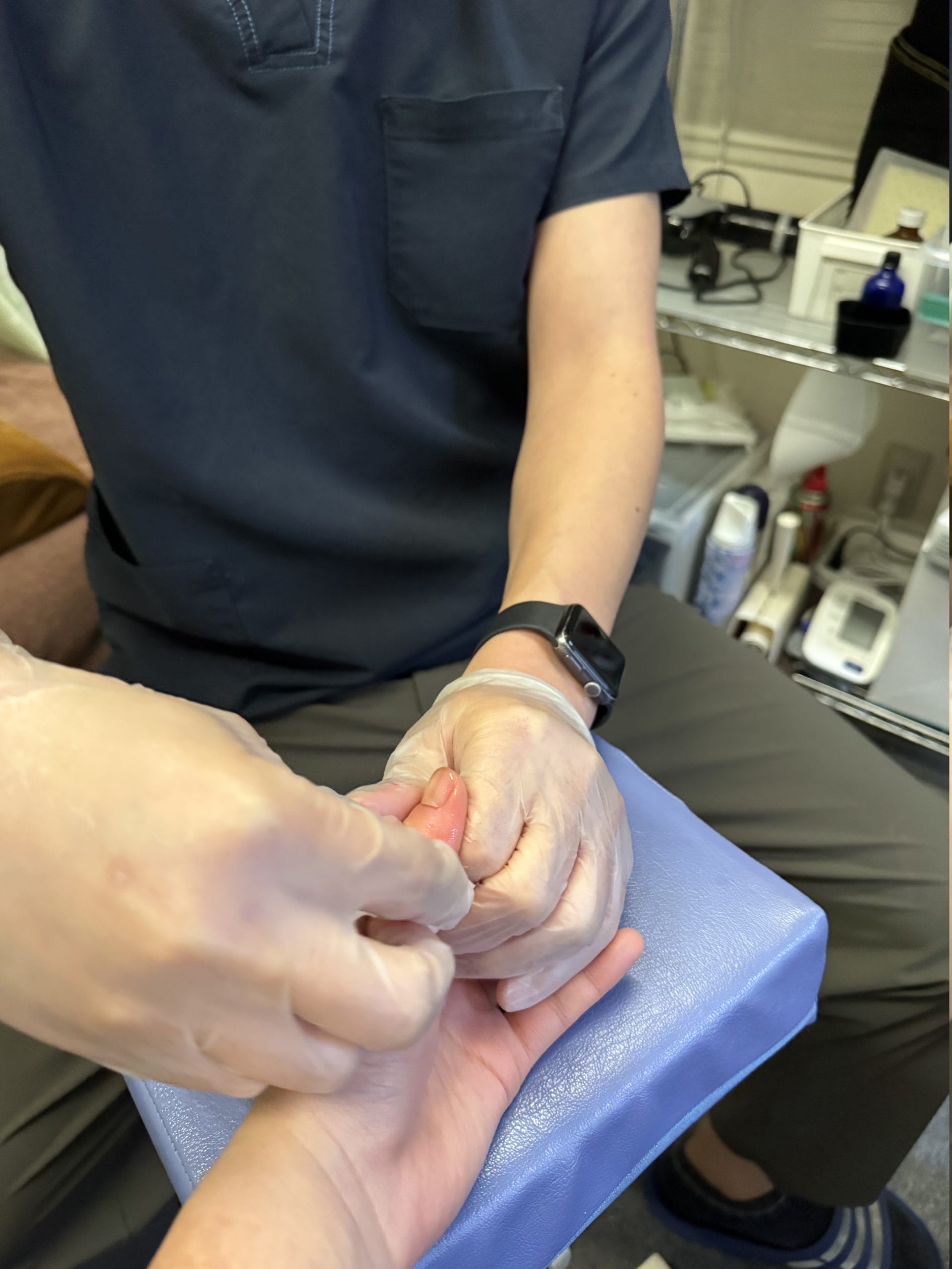 井穴刺絡とは、手足の爪の横にある「井穴(せいけつ)」と呼ばれるツボを用いて、